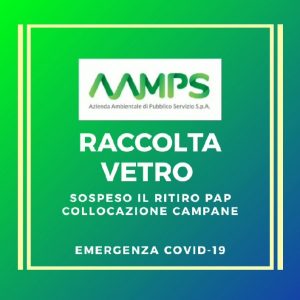 Secondariamente da lunedì 23 marzo è sospesa, fino a nuove disposizioni, anche la raccolta del vetro ma, per limitare i disagi alla cittadinanza, verranno collocate in strada 60 campane di colore verde che potranno essere utilizzate periodicamente dai cittadini per il corretto conferimento di tale frazione di rifiuto.