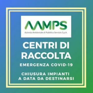 A tutela della salute dei lavoratori e dei cittadini, nonché in linea con quanto indicato nel Decreto del Presidente del Consiglio dei Ministri del 12 marzo 2020, informiamo che i Centri di Raccolta di Aamps rimarranno chiusi fino al 25 marzo 2020 in attesa di nuove disposizioni.