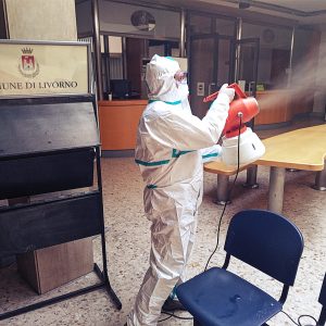 Aamps sanifica gli sportelli al pubblico del Comune di Livorno